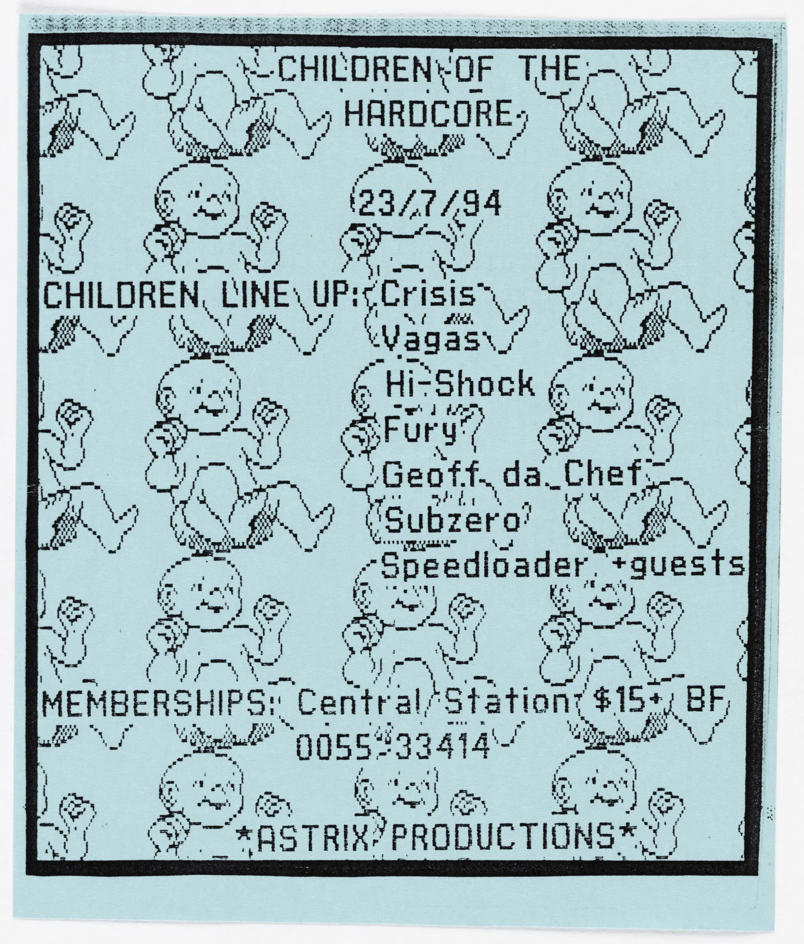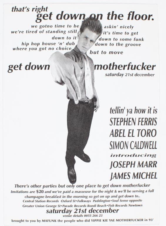 During the 1990s David Travis collected the flyers from record stores in Sydney, particularly Central Station Records, where promoters of dance parties had placed them for customers to take for free. In his own words, 'I used to frequent record stores during this period and pick up the flyers for upcoming parties.'.